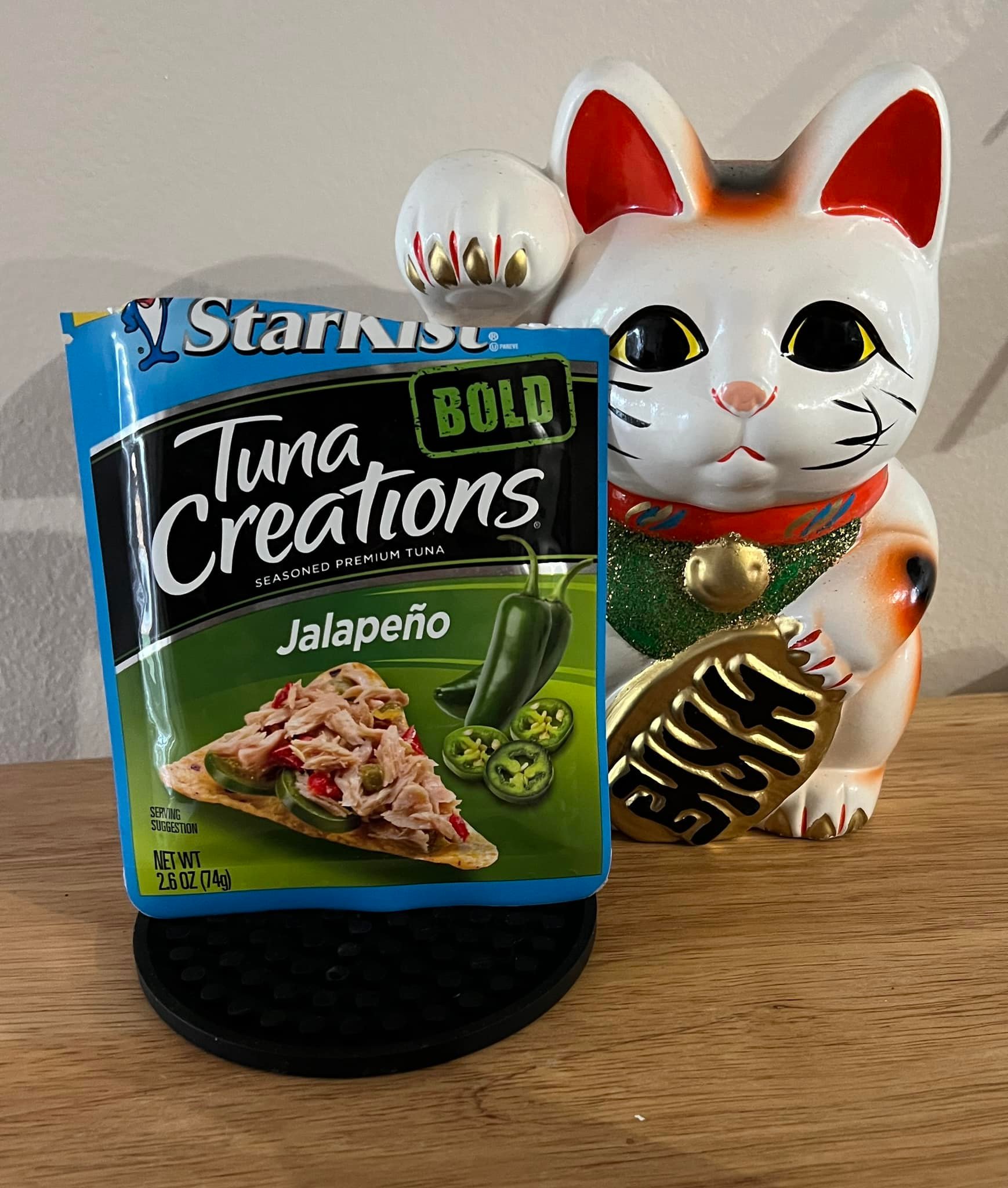 Texture: You know, I’m more experienced on the topic of tuna composition than I thought I would be when I was a kid. This has none of the strange tuna pâté thing going on that a majority of these seem to have. Large chunks of jalapeño are obvious and the tuna is flaky and essentially what you’d find in a can. Not bad.