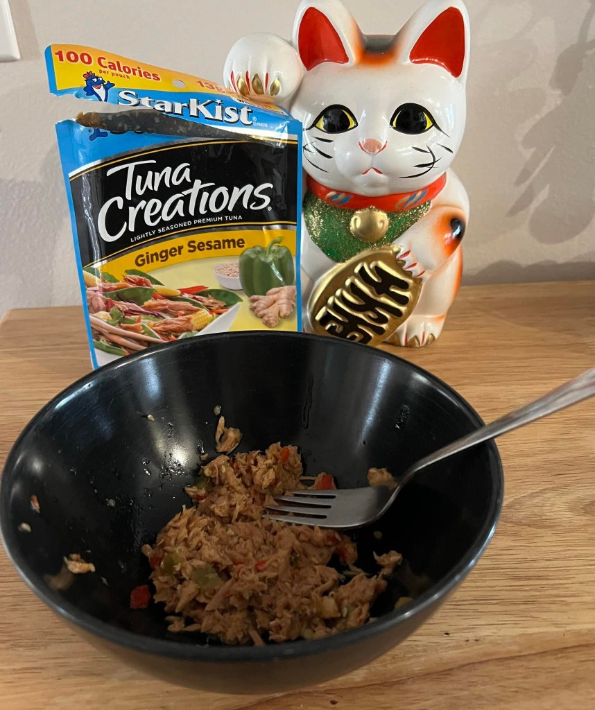 Ginger and Sesame could be somewhat simple to make work, but if I’ve learned anything about Tuna Creations, I’ve learned that they love to reinvent the wheel. The ingredients label is not promising in this regard. There’s some shitake extract, carrot extract, and uh… citrus fiber whatever the hell that is.
