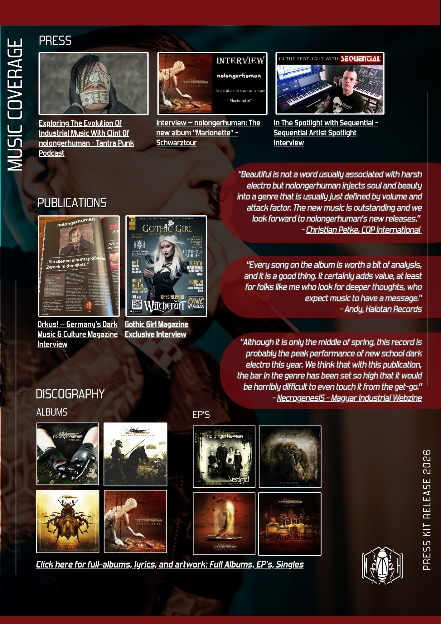 Press, Reviews, & Interviews: https://nolongerhuman.net/press
