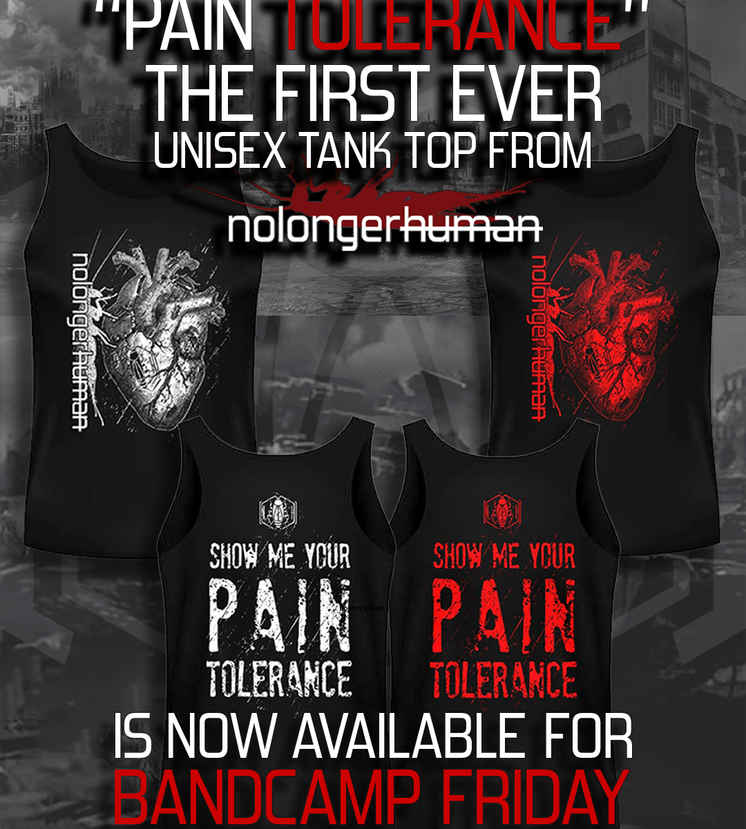 The first ever nolongerhuman Unisex Pain Tolerance Tank Tops are now available in both white & red print designs for Bandcamp Friday. White Print nolongerhuman.bandcamp.com/merch/pain-tolerance-tank-top-white-print-unisex Red Print nolongerhuman.bandcamp.com/merch/pain-tolerance-tank-top-red-print-unisex Designed by the brilliant Vlad McNeally of kallisti:design and printed on Tultex Fine Jersey Unisex Tank Tops, these soft, lightweight tanks feature reactive dye for longer lasting …